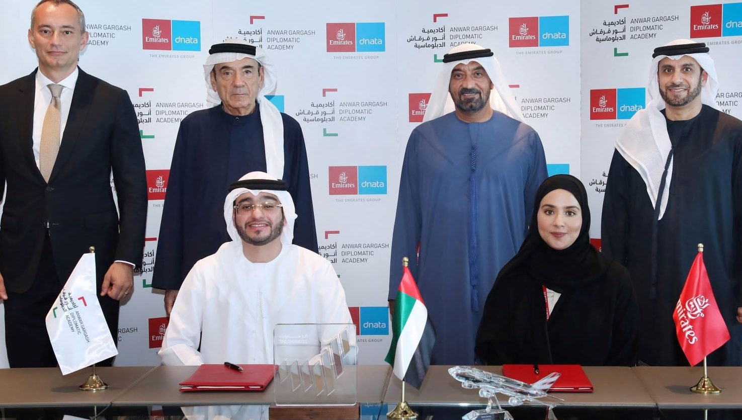 وقعت مجموعة الإمارات وأكاديمية أنور قرقاش الدبلوماسية، مذكرة تفاهم لإطلاق برنامج تدريبي متخصص بتطوير القدرات الدبلوماسية، لمديري محطات طيران الإمارات التجارية الخارجية من الكوادر الإماراتية حول العالم،وذلك ضمن برنامج السفير التجاري القيادي الذي أطلقته المجموعة مؤخراً.