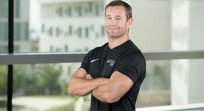 يقود مدرب القوة والتكيف في جامعة نيويورك أبوظبي هيو جونز، جلسات اللياقة البدنية الأسبوعية بهدف الحفاظ على الصحة الجسدية واللياقة البدنية أثناء الالتزام بالتباعد الاجتماعي تجنباً لانتشار فيروس كورونا.