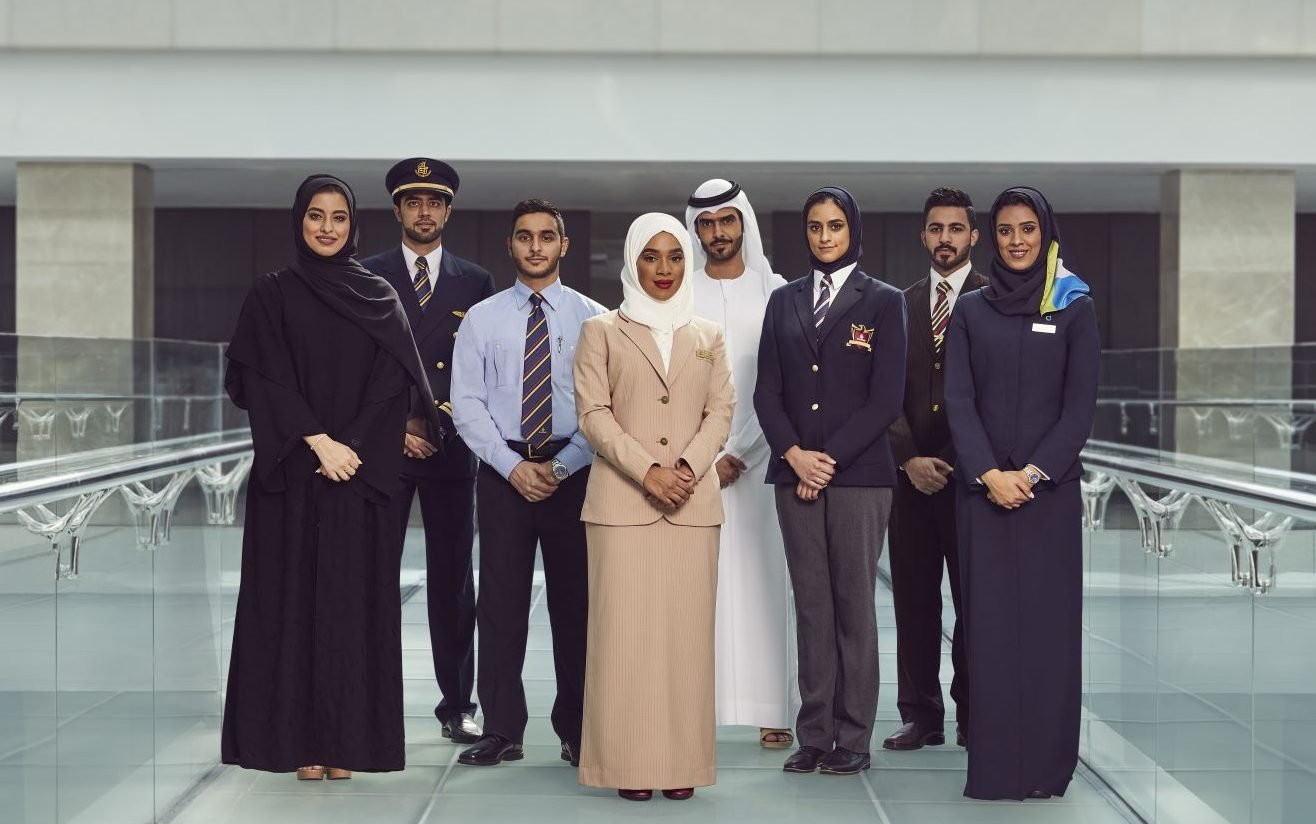 يتلقى الموظفون الجدد تدريباً نظرياً وعملياً لكي يتمكنوا من الاندماج الكامل في أدوارهم الجديدة ويساهموا بفعالية في نمو أعمال وعمليات مجموعة الإمارات وصناعة الطيران عامةً. ويخضع متخصصو خدمة العملاء لتدريب مكثف مدته 12 شهراً يتضمن صقل مهاراتهم الشخصية والتقنية. كما يخضع المرشحون لبرنامج طاقم الضيافة المواطنين لدورة تدريبية مدتها 7 أسابيع للتأهل للعمل وتمثيل وطنهم على رحلات طيران الإمارات، أكبر ناقلة جوية دولية في العالم.