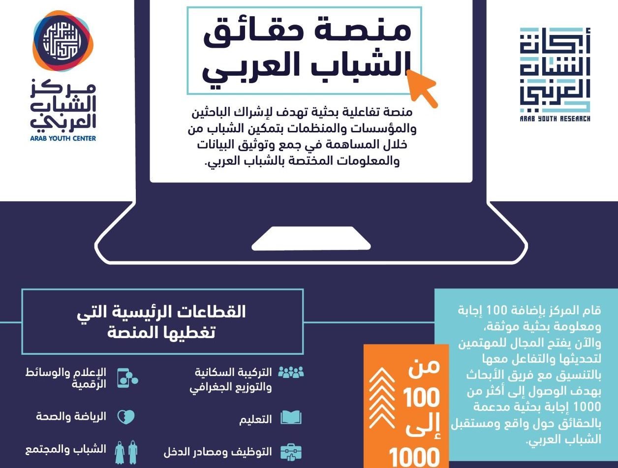 أعلن “مركز الشباب العربي” إطلاق “منصة حقائق الشباب العربي” تسمح للأفراد والباحثين والمؤسسات والمنظمات والقطاعات المعنية، بتقديم البيانات والمعلومات حول واقع الشباب العربي ومستقبله.