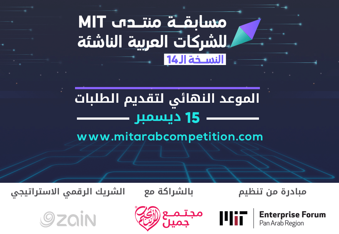 دعا منتدى MIT لريادة الأعمال في العالم العربي النسخة الـ14 الرقمية من مسابقة منتدى MIT للشركات العربية الناشئة، رواد الأعمال العرب من جميع القطاعات لتقديم طلبات المشاركة عبر الموقع الإلكتروني للمسابقة. (سجل)