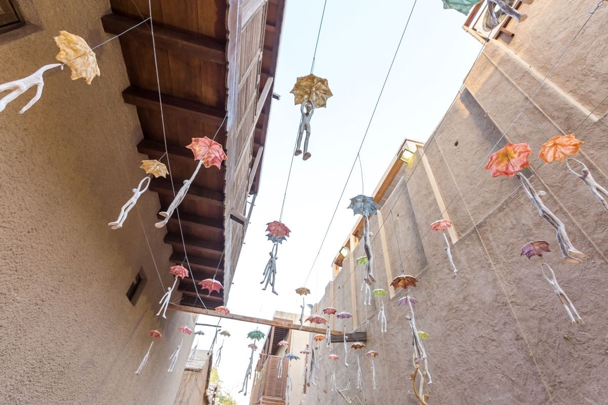 كما يتيح للزوار، فرصة التجول بين البراجيل التراثية التي تتحول إلى معارض فنية مصغّرة، وداخل دُوره التي يحتضن كل منها أعمال موهوبة فنية ناشئة من المنطقة والإمارات.