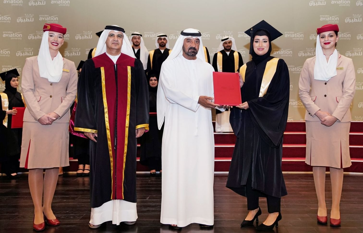 وقام الشيخ أحمد بن سعيد آل مكتوم، الرئيس الأعلى الرئيس التنفيذي لطيران الإمارات والمجموعة ورئيس جامعة الإمارات للطيران،بتسليم الخريجين شهاداتهم في حفل أقيم في حرم الجامعة.