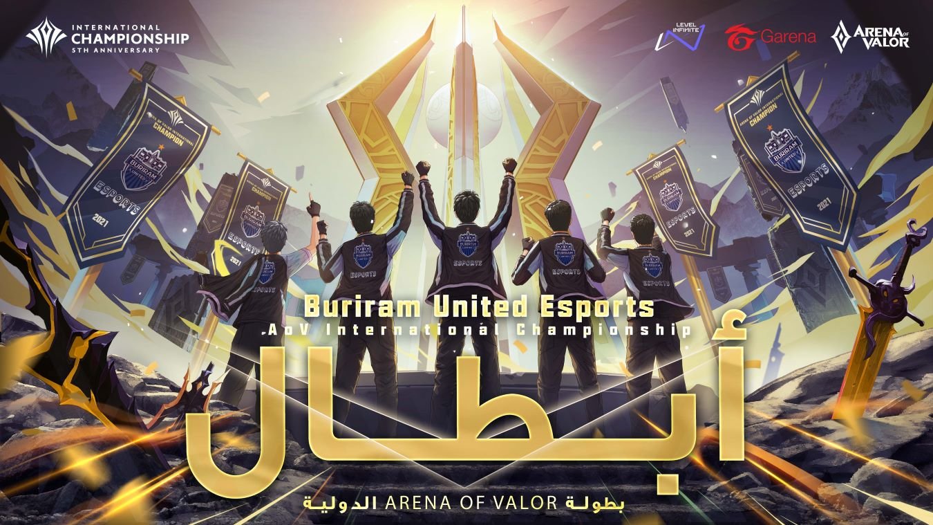 توِّج فريق بوريرام يونايتد إيسبورتس ببطولة Arena of Valor الدولية (AIC) 2021، وفاز بكأس البطولة وبالجائزة الكبرى التي تُقدَّر بنحو 400,000 دولار أمريكي، بعد خوض معارك خلال سبع مباريات.