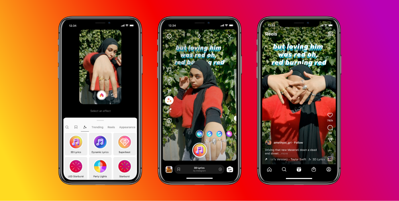 حوّل أي مقطع ريلز إلى محتوى مفعم بالحيوية بإضافة كلمات رائعة وديناميكية. تُطبق خاصية Superbeat بذكاء مؤثرات خاصة على إيقاع أغنية المستخدم. قم بتثبيتها مع كلمات ديناميكية (Dynamic) أو ثلاثية الأبعاد (3D)، وهما ميزتان جديدتان تُضافان لكلمات الأغاني وتعرضها على الشاشة ليؤديها الأشخاص ويتفاعلون معها، كما تجعلان مقاطع الريلز أكثر جاذبية. اقضِ وقتاً أقل في التحرير (إضافة التعديلات والمؤثرات) ووقتاً أكثر في إنشاء المحتوى ومشاركته مع الآخرين.