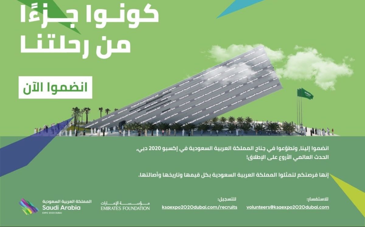 أطلق الجناح السعودي في إكسبو 2020 دبي، حملة تطوعية بالشراكة مع مؤسسة الإمارات، لاستقطاب حوالي 1000 شابة وشاب سعودي للمشاركة بالعمل التطوعي في الجناح خلال المعرض.