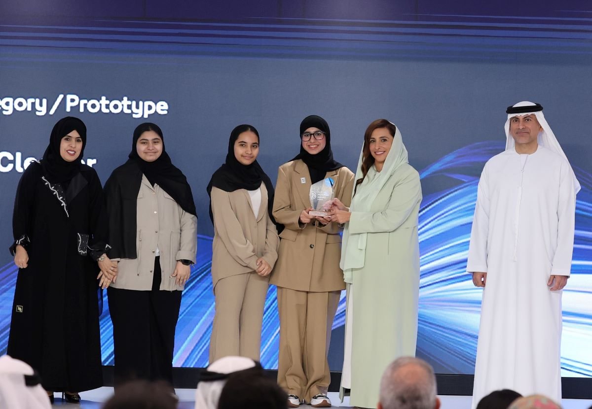 *فاز ضمن فئة المجموعات النموذج الأولي منظف الألواح الكهروضوئية الذي يعمل تلقائياً أو عن بعد، باستخدام مستشعرات للغبار ومضخة للمياه المقطرة. وشمل أعضاء الفريق: مريم الغافري، وعائشة المغني، وموزة اليماحي، ومروة اليماحي (معلمة ومشرفة)