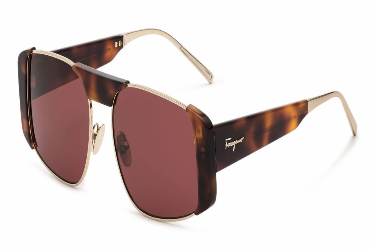 عُرضت النظارة ضمن عرض أزياء النساء الخاص بالدار في ميلان، ويعيد هذا الموديل الأنثوي تجسيد مفهوم الشعار الكلاسيكي بخامات حصرية ومظهر جذاب. يجمع الإطار المستوحى من الماضي الأسيتات والمعدن في تصميم هندسي بارز وجذاب. تتميز النظارة الشمسية بواجهة جريئة وأذرع عريضة مزينة بتوقيع “Ferragamo” الكلاسيكي ونهايات الأذرع الرفيعة.